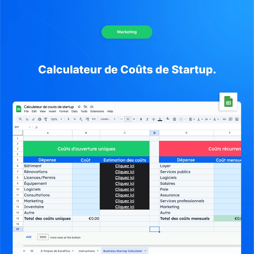 Ce calculateur de coûts de startup est l’outil idéal pour préparer le lancement de votre entreprise. Avec une interface simple et intuitive, il vous permet de :