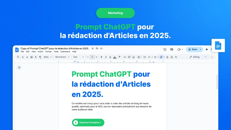 Rejoignez ExcePlus gratuitement et accédez à une bibliothèque de ressources conçues pour booster votre activité.